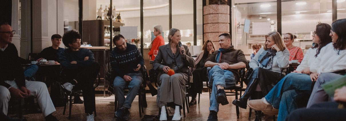 Es ist ein kalter Montagabend im Dezember. Menschen unterschiedlichster Herkunft, Wohnorte, Hautfarben und Sozialisierungen sitzen im Luitpold Salon des Café Luitpold zusammen. In der Mitte des Salons ist ein Stuhlkreis aufgestellt. Die langsam eintrudelnden Gäst*innen beäugen ihn neugierig, setzen sich aber dann doch lieber an den Rand und bestellen sich erste Köstlichkeiten. Dann geht es los: Birgit Magiera (vom Bayerischen Rundfunk), die Moderatorin des Abends, lädt zum gemeinsamen Philosophieren in den Kreis ein.